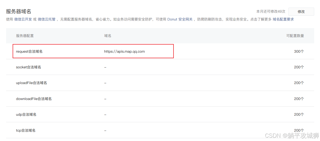 在管理-开发管理-开发设置-服务器域名中添加腾讯地图的访问地址