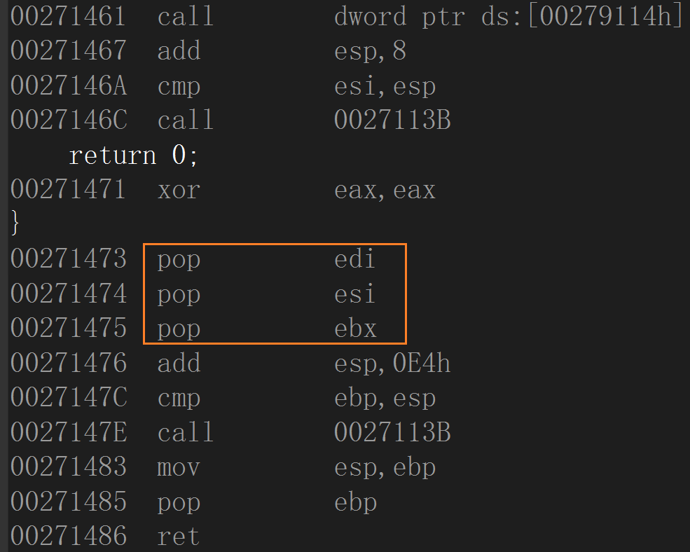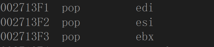 esp再往下走,再三次弹出pop:edi,esi,ebx