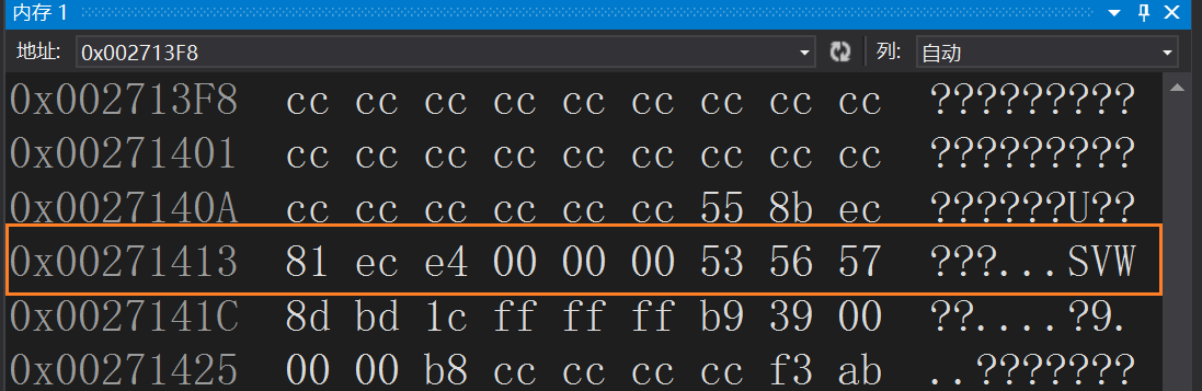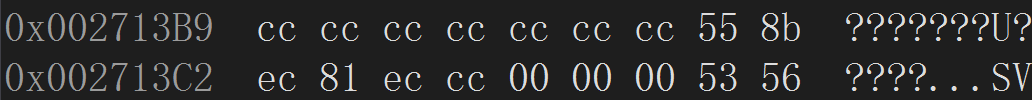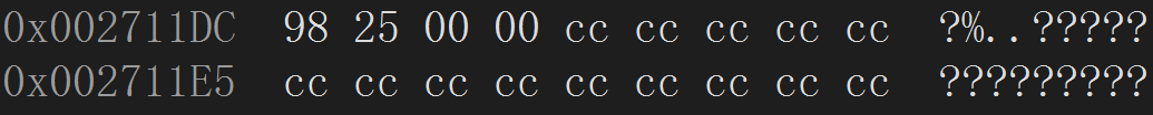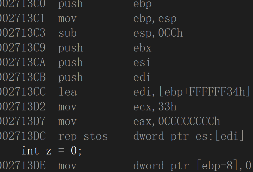 即0CCCCCCCCh,一直到栈底指针ebp结束,这个初始化空间还是很大的