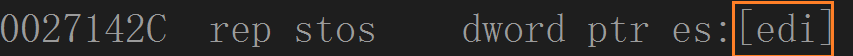 可以看到我们通过的dword指令将edi向下的一片区域初始化的改为eax的内容