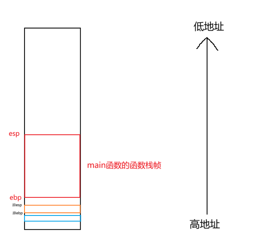 因此我们就知道,在调用main函数时候,其他两个函数的栈帧已经创建好