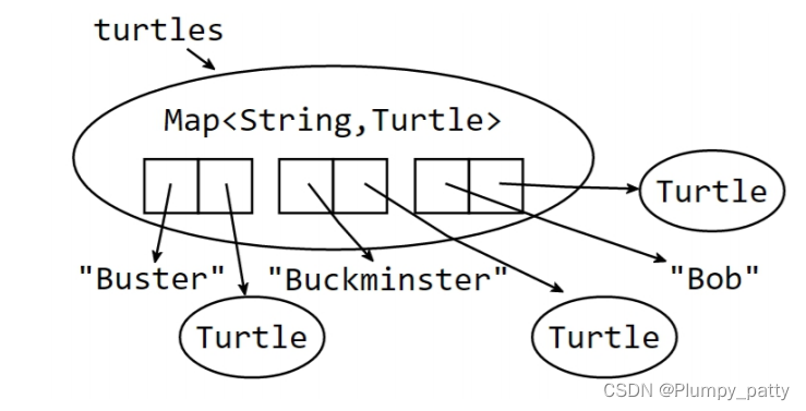 其中:基本类型值使用箭头表示,对象类型值使用圈加其名字表示,若详细表示,则可记录其内部属性。