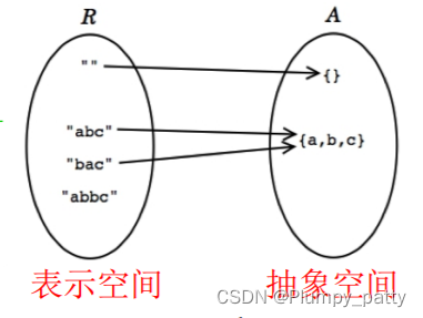 AF:由实际的表示到抽象的形式间的映射,体现了实现抽象数据的过程。