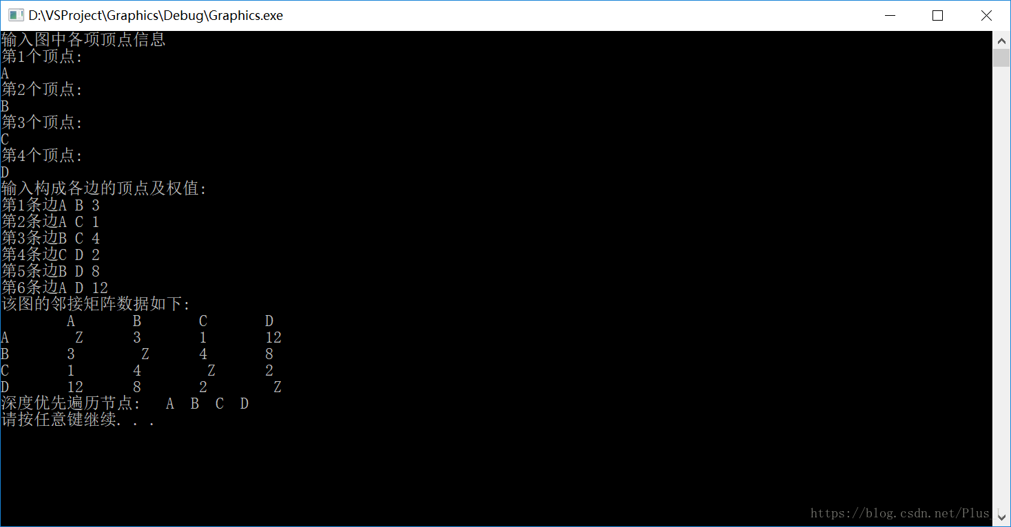 cout << "该图的邻接矩阵数据如下: " << endl;