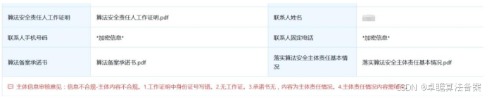 相比于一些专业性很强且需要撰写技巧的部分,一些申报者会在算法备案初审、复审的填报中出现各种近乎犯罪式的失误。常见的驳回原因包括但不限于:主体信息和营业执照不一致、身份证号码不一致、身份证号/手机号位数错误、缺工作证件照等等,常见于难度相对最低的资质申报(即初审)环节。这里我只能反复强调:别粗心!别粗心!别粗心!能一次搞定的东西就别来第二次!严重影响备案时间!