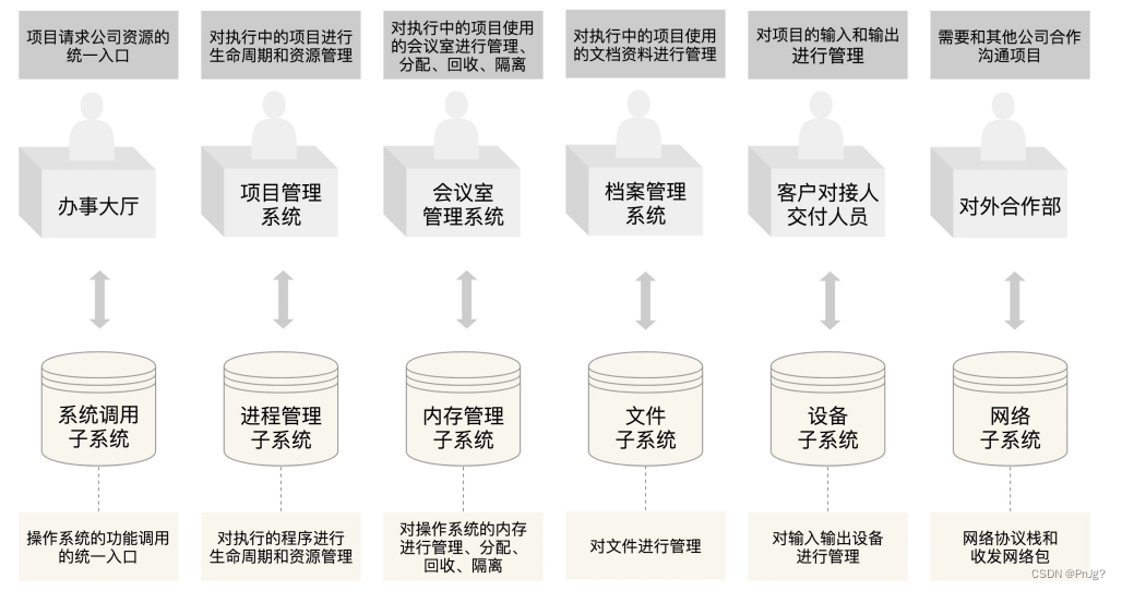 “操作系统其实就像一个软件外包公司,其内核就相当于这家外包公司的老板。所以接下来的整个 课程中,请你将自己的角色切换成这家软件外包公司的老板,设身处地地去理解操作系统是如何 协调各种资源,帮客户做成事情的。” ——刘超