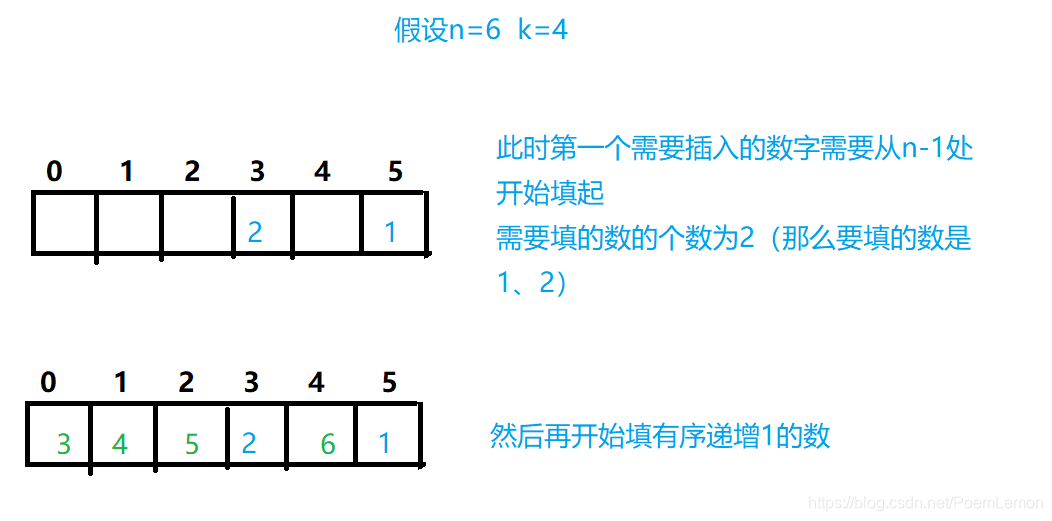int index = k % 2 == 0 ? n - 1 : n - 2; // 根据k是奇数还是偶数判断第一个插入的数的位置