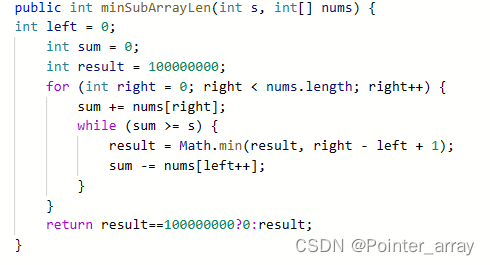 如果滑动窗口内的值(i到j)大于等于7就让左边指针i向右一位