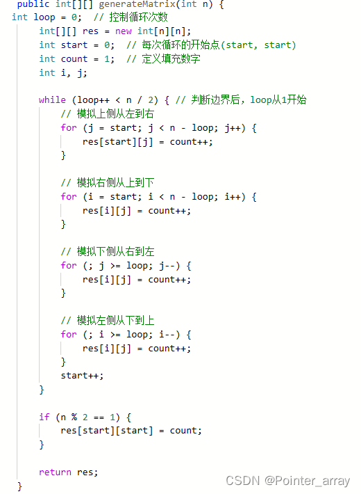 文章讨论了如何使用双指针法和滑动窗口解决LeetCode中的编程问题,包括有序数组的平方、长度最小的子数组和螺旋矩阵的构造。在处理数组问题时,特别注意了双指针在更新结果时的条件,以及滑动窗口在寻找特定条件子数组时的移动规则。对于螺旋矩阵,强调了填充的数学逻辑和边界处理。