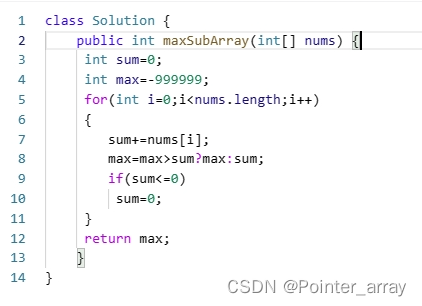 知识点:贪心算法:如果累加值小于等于零 那么后面累加数是无效的 我们可以重新给累加数赋初值 再进行累加
