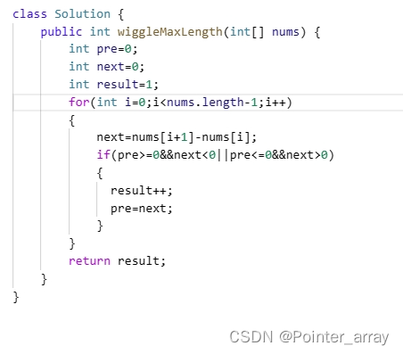 情况二:当数组中只有两个数时要计数 我们可以先把pre赋值为0