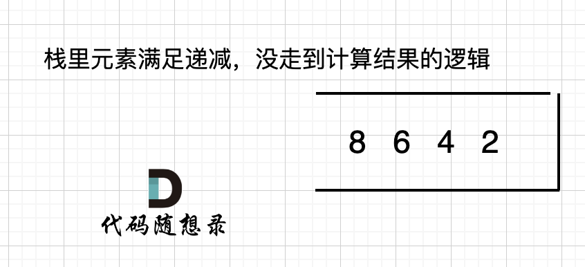 因为 将 8 弹出之后,栈里没有元素了,那么为了避免空栈取值,直接跳过了计算结果的逻辑。