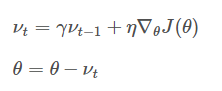 分析上式就会明白动量的作用原理:利用惯性,即当前梯度与上次梯度进行加权,如果方向一致,则累加导致更新步长变大;如果方向不同,则相互抵消中和导致更新趋向平衡。