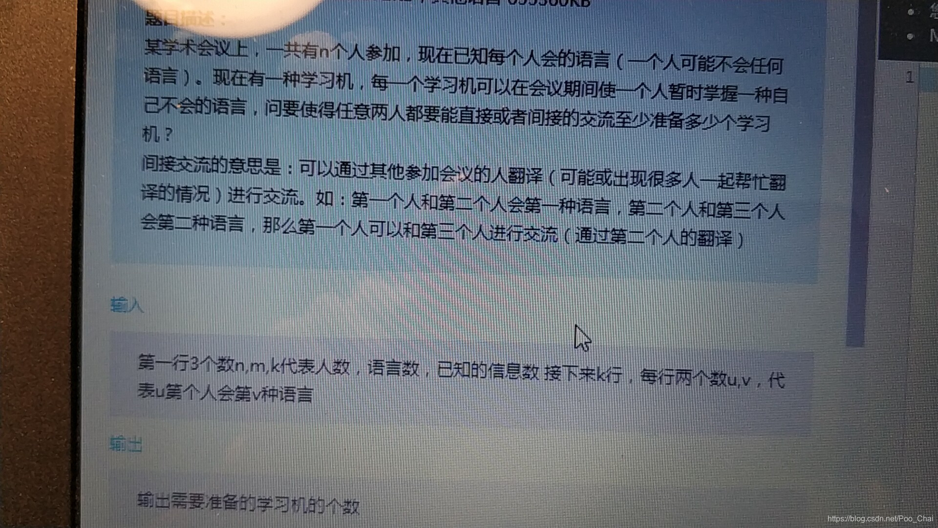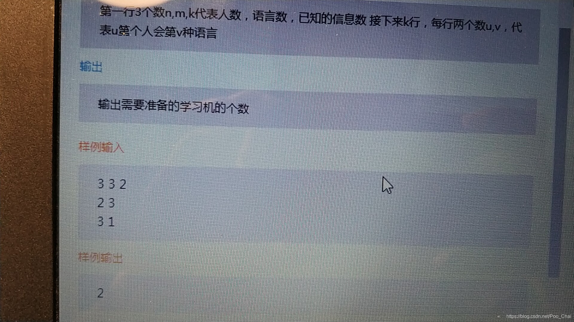 2.两个人如果会的语言没有交集,且找不到第三人分别与两人均有交集,机器数加1。