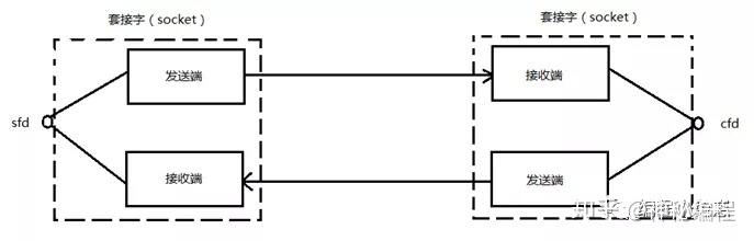 在网络通信中,套接字一定是成对出现的。一端的发送缓冲区对应对端的接收缓冲区。我们使用同一个文件描述符索发送缓冲区和接收缓冲区。