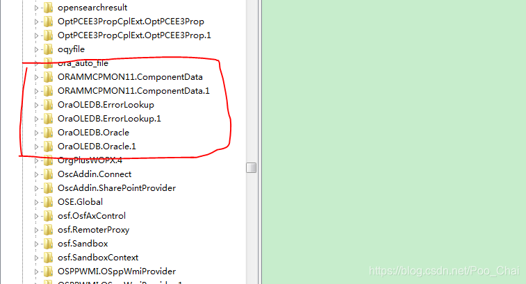 删除HKEY_CLASSES_ROOT目录下所有以Ora或Oracle为前缀的键。