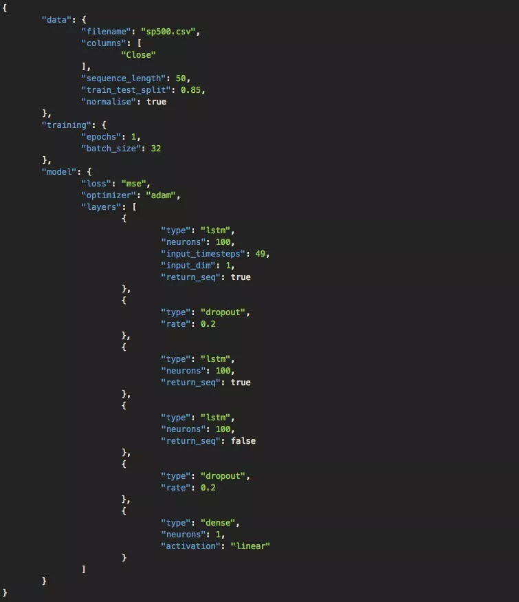为了做到这一点,我们需要先对CSV文件中的数据进行转换,把处理后的数据加载到pandas的数据框架中。之后,它会输出numpy数组,馈送进LSTM。Keras的LSTM一般输入(N, W, F)三维numpy数组,其中N表示训练数据中的序列数,W表示序列长度,F表示每个序列的特征数。