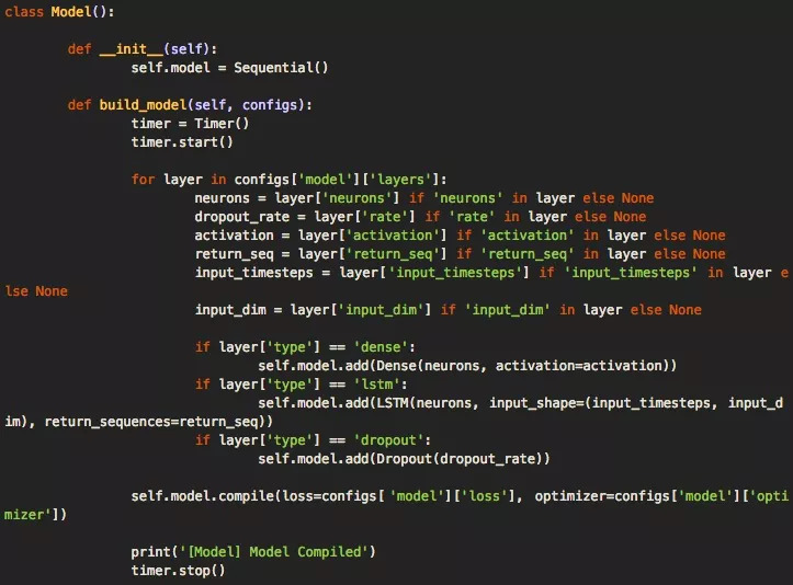 当我们有一个允许加载数据的数据对象之后,就是时候准备构建深层神经网络模型了。我们的代码框架利用模型类型和config.json文件,再加上存储在配置文件中的架构和超参数,可以轻松构建出模型。其中执行构建命令的主要函数是build_model(),它负责接收解析的配置文件。