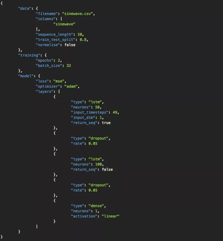 作为参考,你可以在下面的配置文件中看到用于正弦曲线示例的网络架构和超参数。