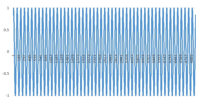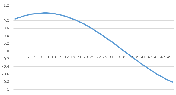 代码数据文件夹中提供的数据包含我们创建的sinewave.csv文件,该文件包含5001个正弦曲线时间段,幅度和频率为1(角频率为6.28),时间差为0.01。它的图像如下所示: