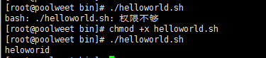 首先要赋予helloworld.sh 脚本的+x权限,然后执行脚本