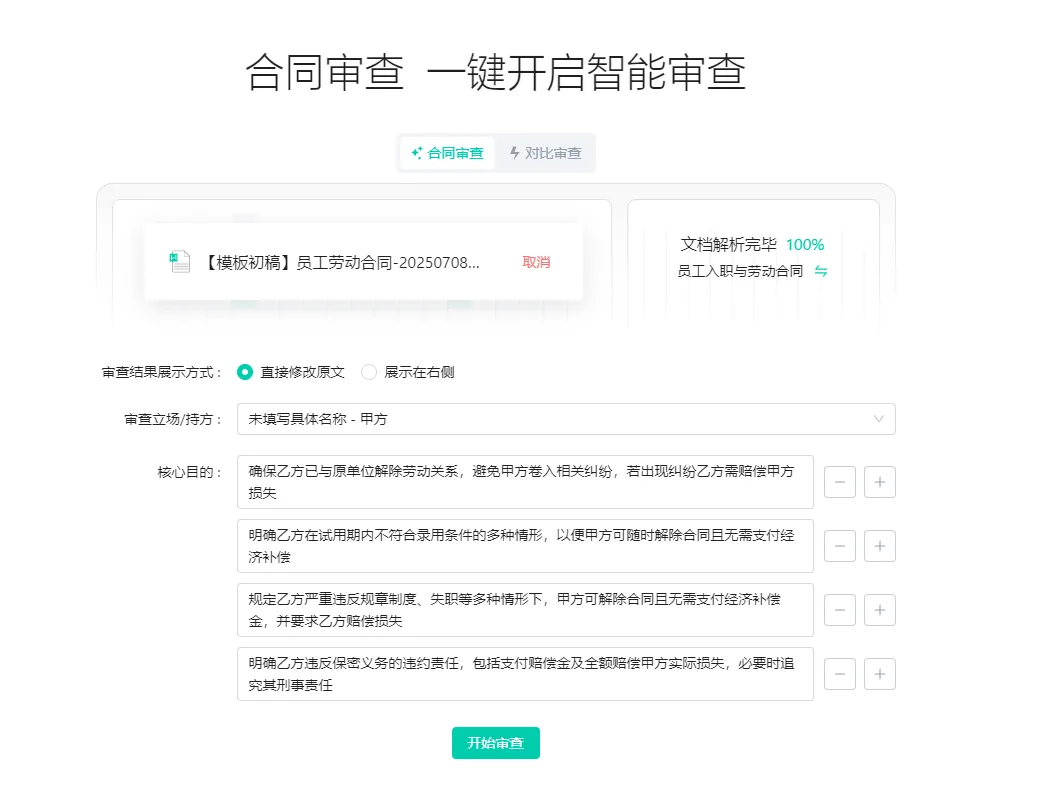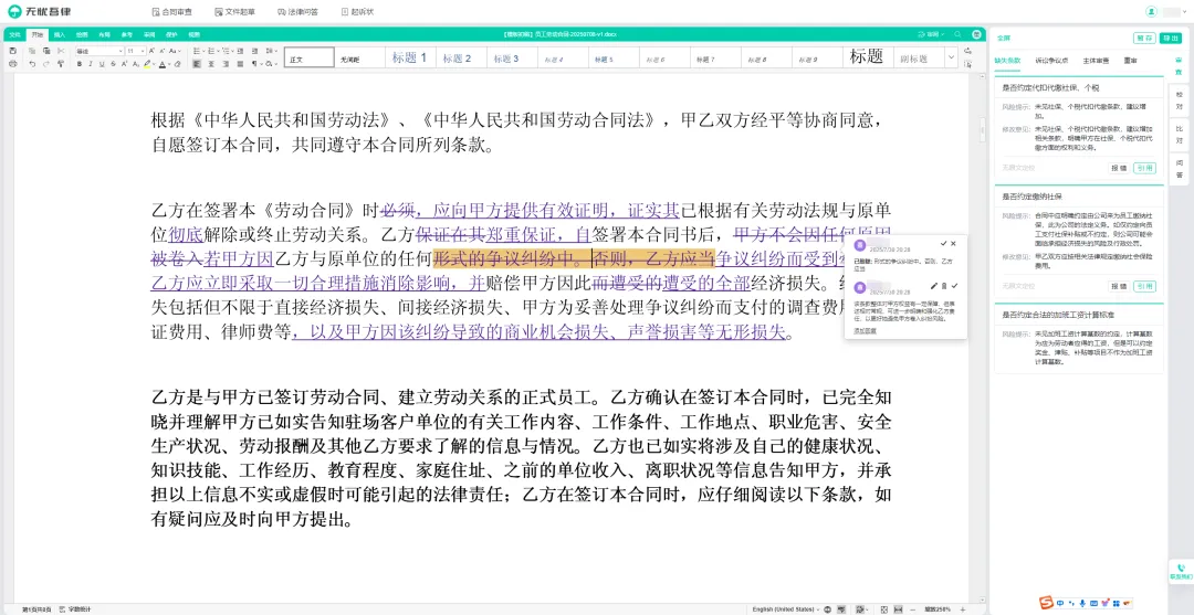 有合同要审查,直接上传,AI直接给你修改好,批注好,不用劳心费力一个字一个字修改。