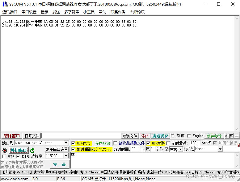 利用串口助手观察,发现指令只发送一次,达到了需要的效果。