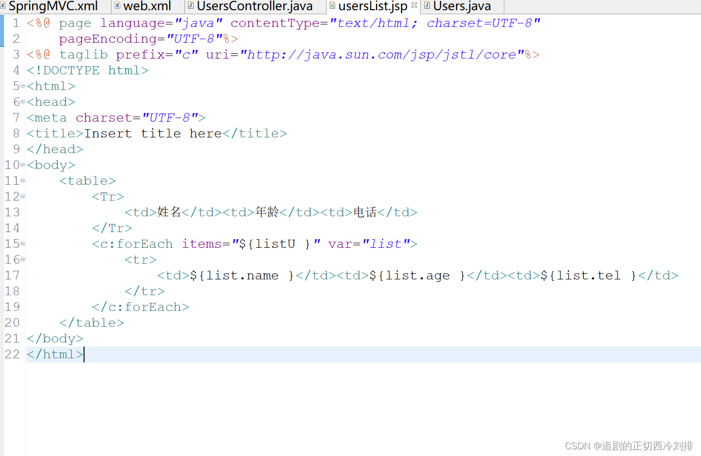 6·指定返回的jsp视图路径,故创建usersList.jsp