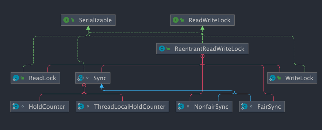和 ReentrantLock 一样,ReentrantReadWriteLock 底层也是基于 AQS 实现的