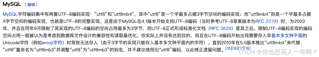MySQL 字符编码集中有两套 UTF-8 编码实现: