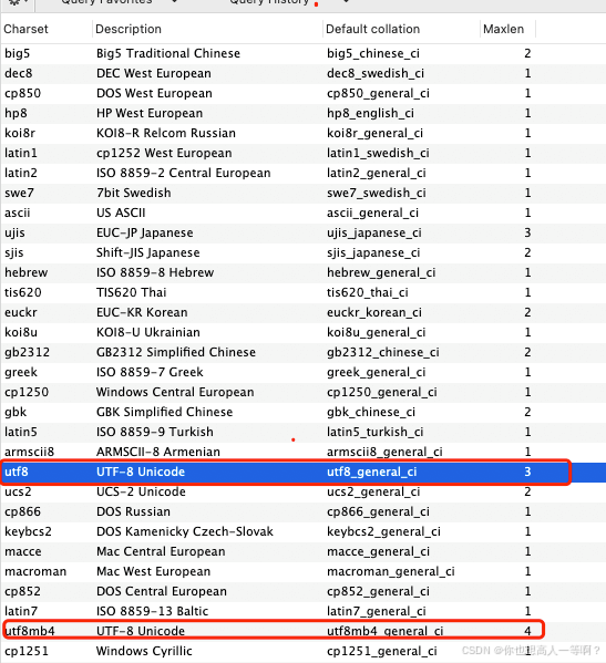 utf8:utf8编码只支持1-3个字节 。 在utf8编码中,中文是占 3 个字节,其他数字、英文、符号占一个字节。但 emoji 符号占 4 个字节,一些较复杂的文字、繁体字也是 4 个字节。utf8mb4:UTF-8 的完整实现,正版!最多支持使用 4 个字节表示字符,因此,可以用来存储 emoji 符号。