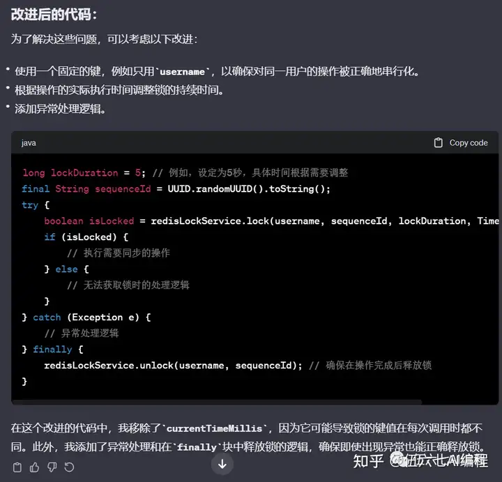 我们可以看到 AI 能很好的帮我们分析代码中的 bug,并提出解决方案。