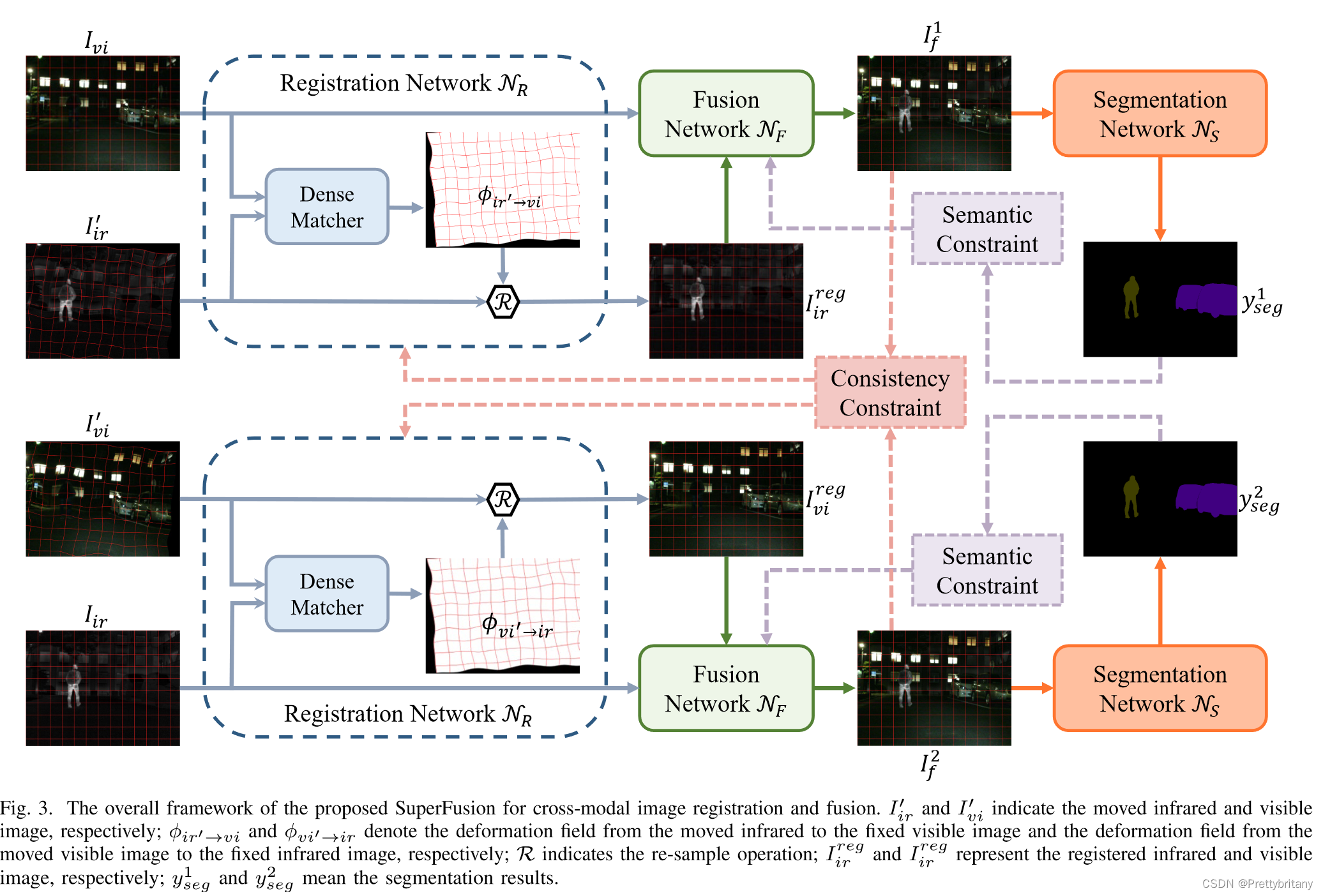 在本文中,提出了一个考虑图像配准、图像融合和高级视觉任务要求的多功能框架,称为 SuperFusion。它显着扩展了实际应用中图像融合的范围。 SuperFusion 由三个组件组成,包括图像配准、融合和语义分割网络。