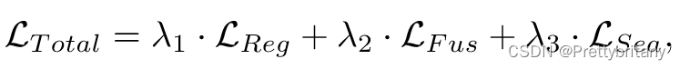 总损失:用来指导融合模型训练的最终融合损失 LF 可以概括为上述三个子损失的加权和,其公式为: