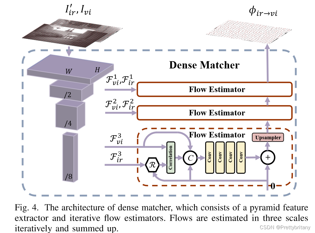 Dense matcher包括金字塔特征提取器和迭代流估计器。