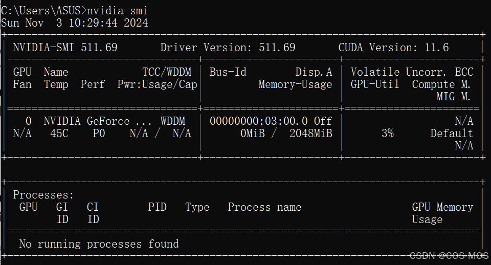 指令:nvidia-smi ,可以看到cuda版本为11.6