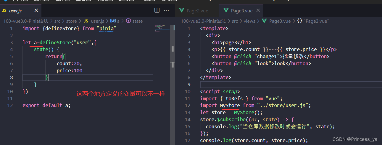 let { count, price } = toRefs(store);