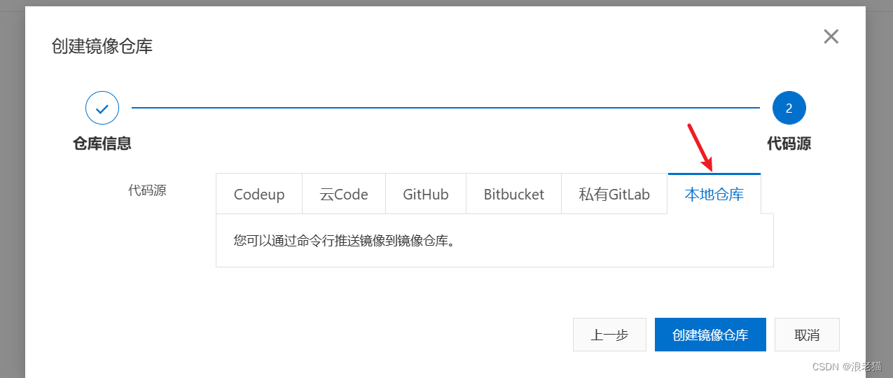 这里代码源选择本地仓库,当然读者也可以根据自己需求,选择其他代码源。