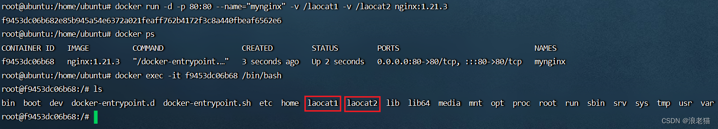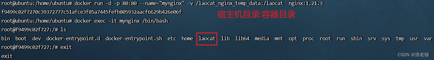 我们将宿主机目录/laocat_nginx_data挂载为容器的/laocat目录。