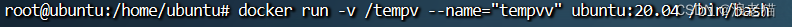 恢复就比较容易理解,我们执行命令创建一个带数据卷的容器tempvv,执行命令如下。