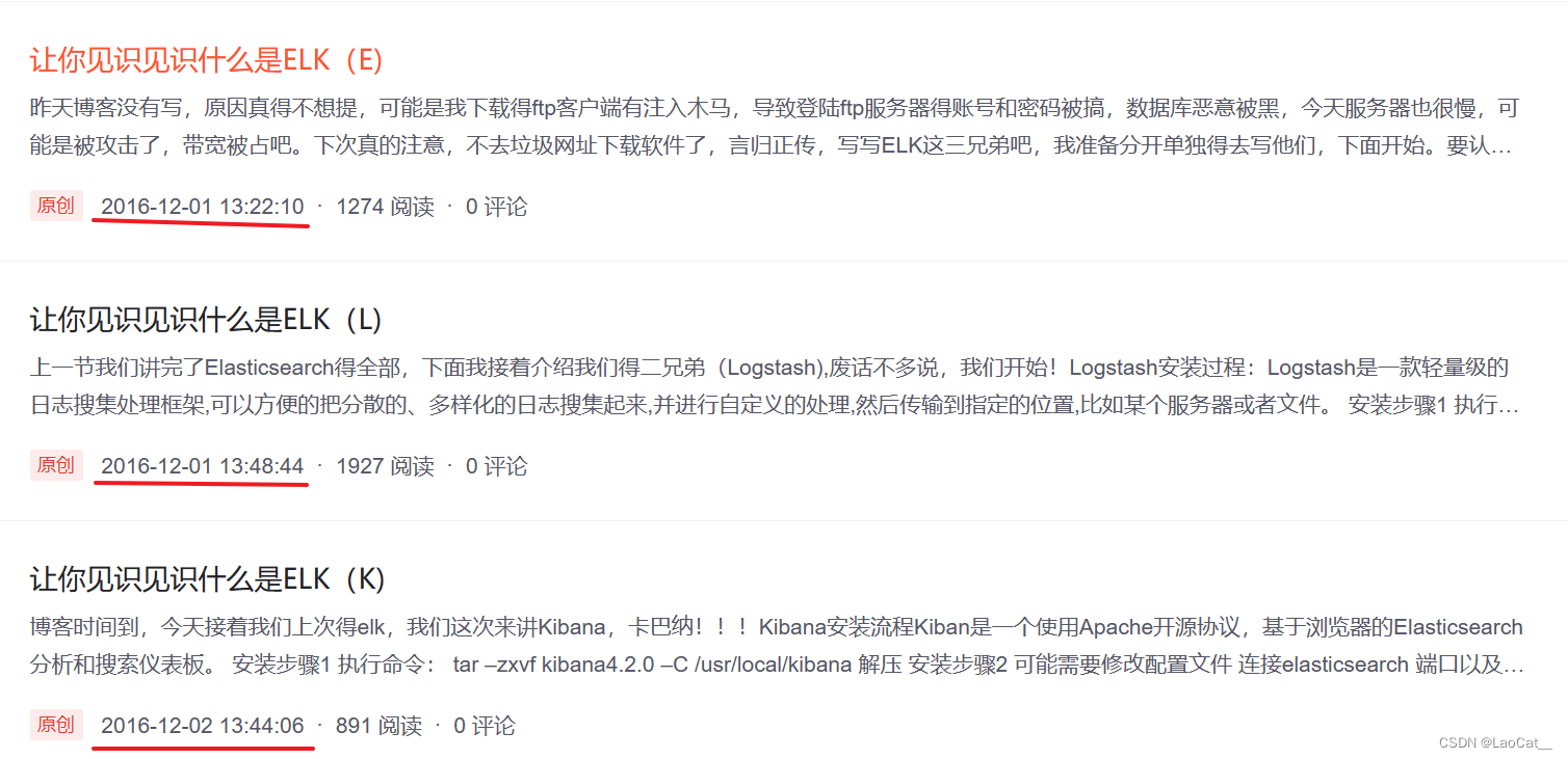 ElasticSearch我想我不用过多介绍,一个分布式、高扩展、高实时的搜索与数据分析引擎;说来话长,16年当时的公司项目就用到了ElasticSearch,用ElasticSearch来进行商品的搜索,当时国内并没有与之相关的任何博客、文档;不用说也清楚攻克其有着不小的困难,我硬着头皮苦笑着接下活来,作为一个还没有现在实力水平3/1的我,在接下来的一周内没日没夜的查阅各种国外资料,服务器上部署一了一次又一次,最终在一个星期后的周一晚上10点30分左右,我看着项目的控制台输出了我调用其API后的正确结果,兴奋的叫出声来 ~,后来便抓紧时间的补了博文,哈哈哈 ~,现在看看当时的博文,是真的不会表达啊 ~(虽然现在也不咋地,狗头 ~)。