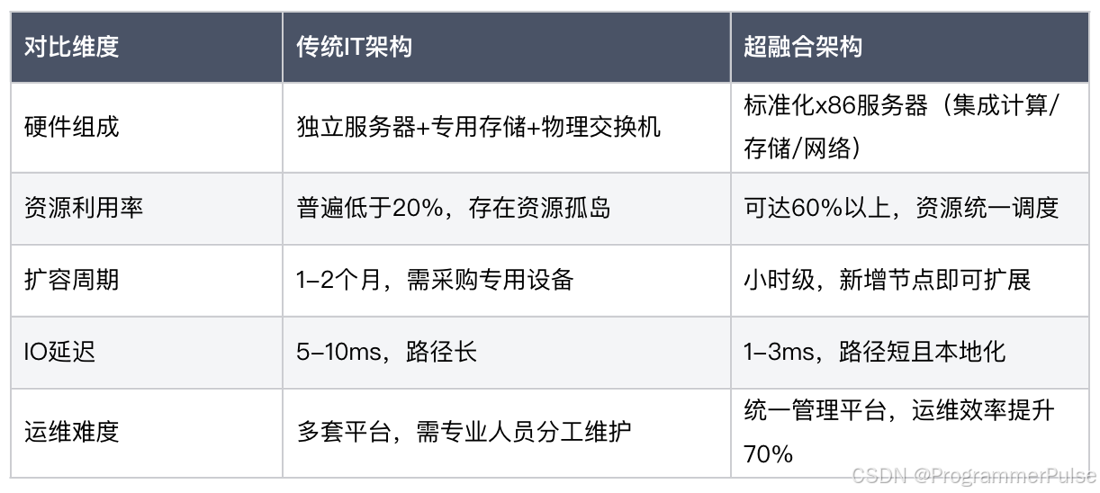 为了更直观地对比,我们整理了传统架构与超融合架构的核心差异: