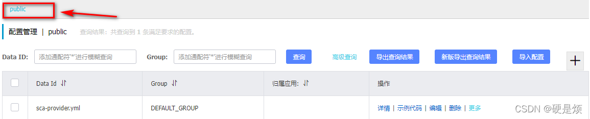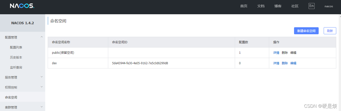 Nacos中的命名空间一般是进行环境隔离,我们开始使用的空间都是默认的public空间: