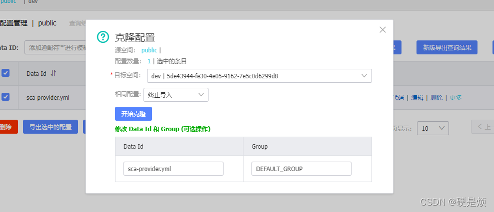 2.在新的命名空间下创建新的配置,也可以直接克隆配置: