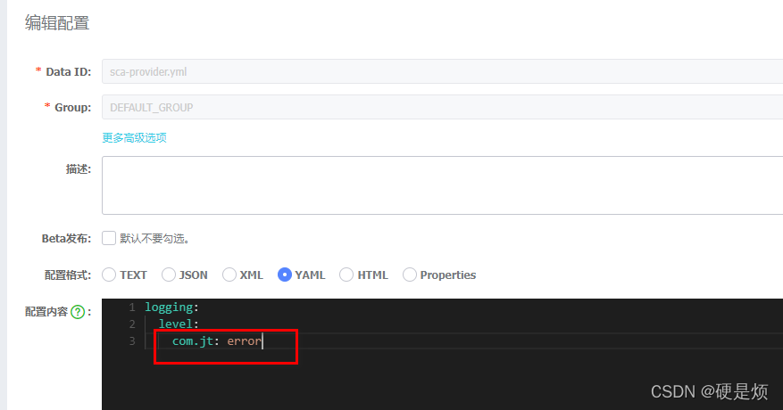1.启动Nacos 命令:startup.cmd -m standalone ,打开Nacos配置中心,新建配置: