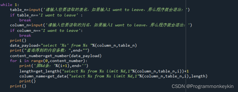 table_name=get_data("select table_name from information_schema.tables where table_schema='%s' limit %d,1"%(db_name,i),length)