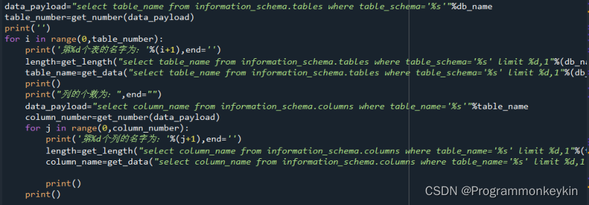 这一函数的功能,举个列子,一个表名叫users,我们根据get_length的函数得到了他的长度为5,那么搭建一个循环次数为五次的循环体,每个循环体内去做盲注插入,得到每个对应的字母。