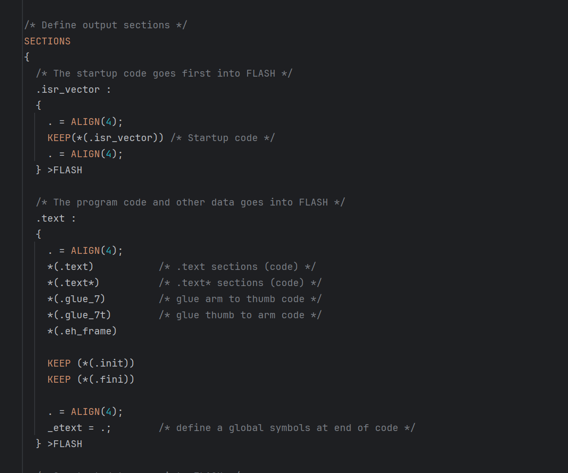 链接文件是为了给链接器看如何分配管理内存还有Flash用的,因此在链接文件前面,需要声明有哪些存储空间以及大小还有属性