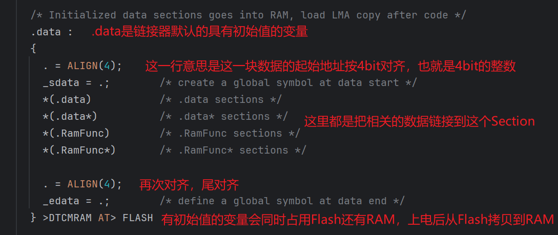 ,这是一块直接位于内核的RAM,有单独的数据总线,访问速度远大于其他RAM,但是大小有限,因此也可以通过直接修改.ld让链接器把数据默认存储在普通的片内SRAM