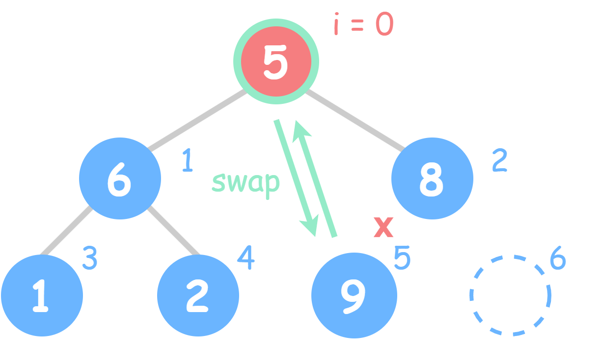 // 父节点存在,且父节点与子节点的值不满足要求时,交换它们的值